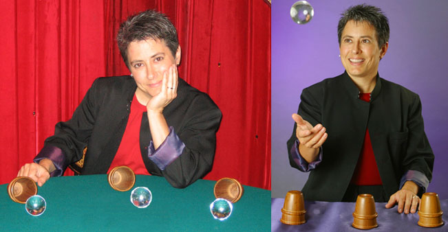 This is Suzanne's favorite show. She performs it regularly at the famous Magic Castle in Hollywood. She is seated in an intimate setting performing a series of miracles with a member of the audience as her assistant. The audience is seated in chairs nearby and all watch together as Suzanne and her helper entertain the group. Suzanne finishes with her trademark Cups and Balls routine that will leave the group speechless.